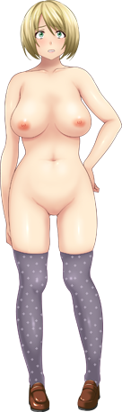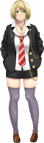 背は小さく、むちむちした体系で胸と尻がでかい。髪は金髪、ピンク色のリップが特徴。